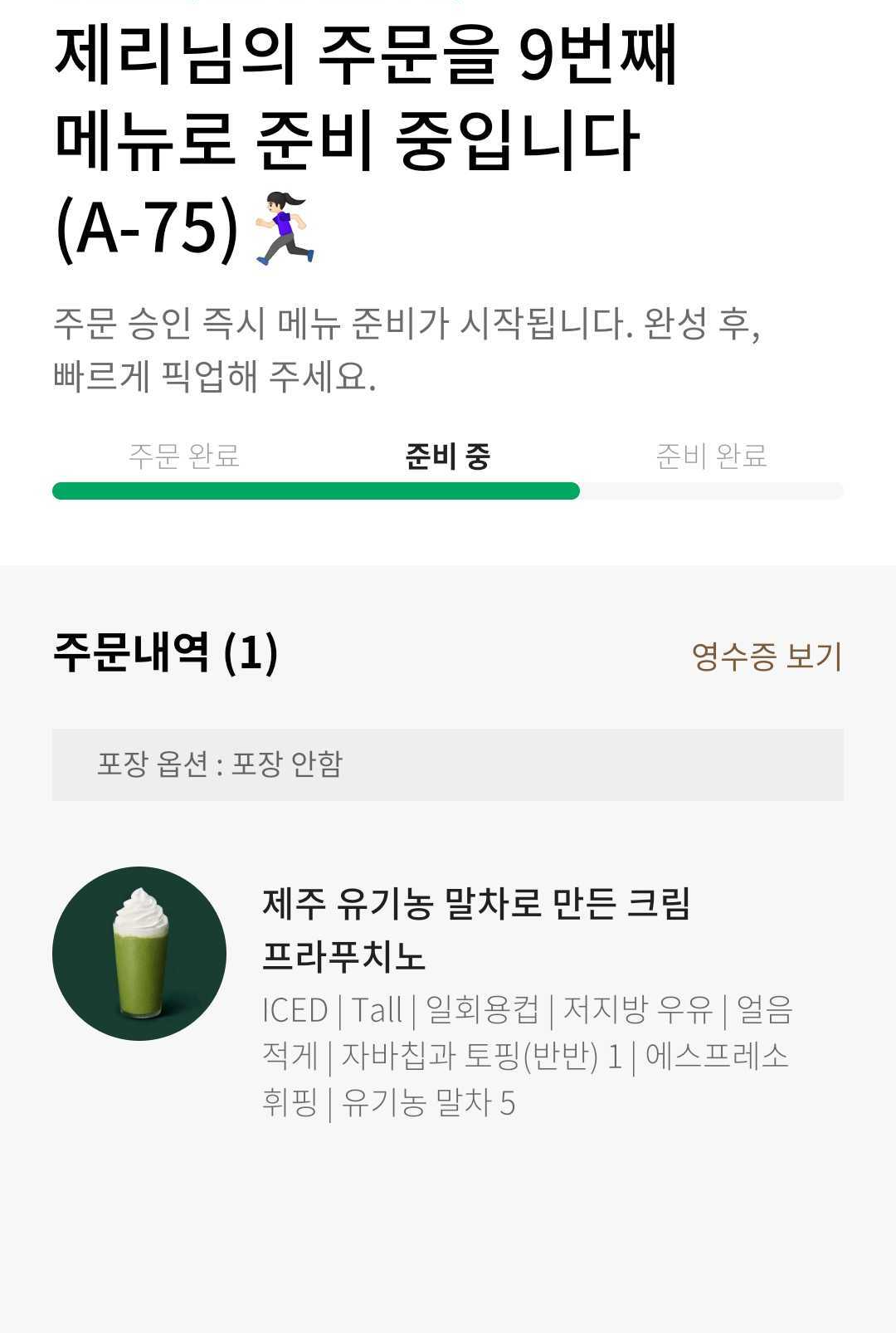얼음 적게 옵션을 선택했는데 얼음이 아예 없었다