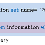 * 서브쿼리(Sub-Query) - SQL 문장 안에서 보조로 사용되는 또 다른 SELECT문을 의미한다. - 최종 결과를 출력하는 쿼리를 메인 쿼리라고 한다면, 이를 위한 중간 단계 혹은 보조 역할을 하는 SELECT문을 서브 쿼리라 한다. - 하나의 SQL문을 기준으로 메인 쿼리를 제외한 나머지 모든 SELECT문을 서브쿼리로 보면 된다. - 서브쿼리는 메인쿼리가 실행되기 이전에 한 번만 실행된다. - 서브쿼리는 여러 개를 사용할 수 있다. - 서브쿼리가 가지는 장점은 한 번 디스크에서 읽어온 데이터를 메모리 안에서 가공해서 사용할 수 있도록 도와주는 것이다. 즉, 동일한 데이터를 다시 한번 이용하여 복잡한 가공에도 물리적인 I/O를 줄여준다. - 서브 쿼리는 SELECT, FROM, WHERE 절 ..