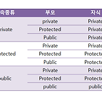 * c++ 상속에는 3가지 상속이 있다. 1. private 상속 private란 자기 자신의 내부에서만 접근 할 수 접근지정자로 외부에서 접근 할 수가 없다. private로 자식에게 상속하면 어떤 접근지정자의 필드라도 자식에게 상속되는 순간 private로 넘어가게 된다. 거의 쓰지 않는 상속 방법이다. 2. protected 상속 protected란 자기 자신의 내부와 상속한 자식에게서만 접근 할 수 있다. protected 상속을 했을때, private로 상속을 넘기면 private로 상속 받고 protected와 public으로 상속을 넘기면 protected로 상속 받는다. has ~ a 관계로 상속된다. 3. public 상송 public이란 내부던 외부던 모두 접근이 가능한 공공 접근자다...